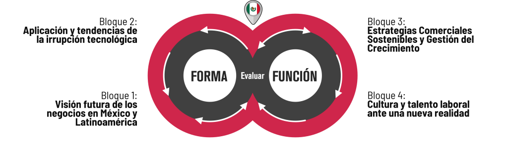 Para ello, con CEOs, Presidentes y Directores Generales de Europa, Estados Unidos, Centroamérica y Suramérica abordaremos de manera dinámica, ágil y práctica, cuatro bloques temáticos que hemos diagnosticado como los más influyentes para el futuro y la prosperidad de nuestras organizaciones: